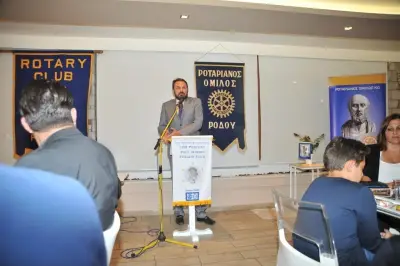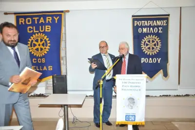 Μια ιδιαίτερη διομιλική πανηγυρική συνεστίαση του Ροταριανού Ομίλου Κω πραγματοποιήθηκε το Σάββατο 06 Οκτωβρίου στο ξενοδοχείο More Meni στο Τιγκάκι. Στην πανηγυρική συνεστίαση παρευρέθηκε η ηγεσία και αντιπροσωπία του Ροταριανού Ομίλου Ρόδου με πρόεδρο τον κ. Κώστα Παμπρή καθώς και η ηγεσία και αντιπροσωπία του Ροταριανού Ομίλου Λέρου με πρόεδρο τον κ. Μιχάλη Αράπη.