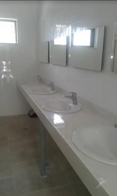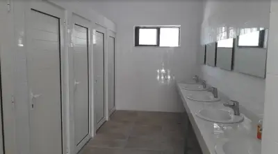 Η ολική ανακαίνιση περιελάμβανε 5 νέες τουαλέτες αγοριών και 5 νέες τουαλέτες κοριτσιών: είδη υγιεινής , πλακάκια, πατώματα , νιπτήρες, εσωτερικές & εξωτερικές πόρτες, καθρέπτες.