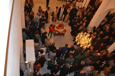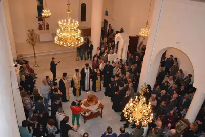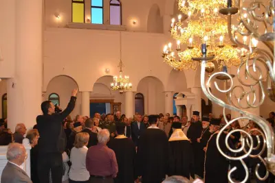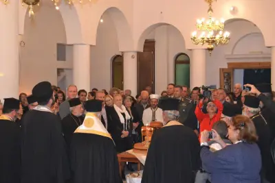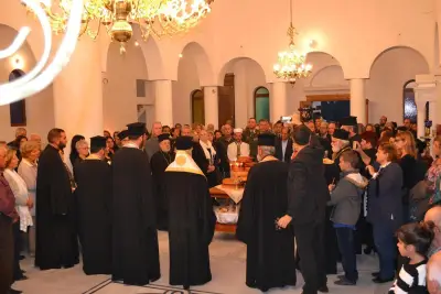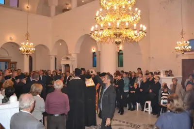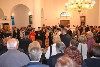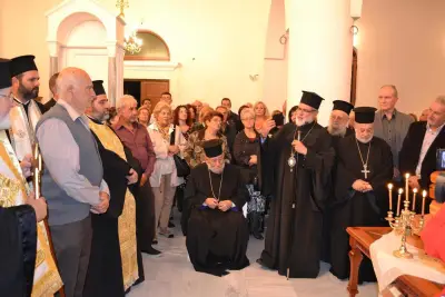 Μετά τό πέρας τῆς ἀκολουθίας ὁ Σεβασμιώτατος Μητροπολίτης Ἀγκύρας κ. Ἱερεμίας συνεχάρη τόν Σεβασμιώτατο Ποιμενάρχη μας καί ὅσους μόχθησαν καί μοχθοῦν γιά τήν ἀποπεράτωση τοῦ Ἱεροῦ Ναοῦ καί συμβούλευσε νά ἀρχίσει ὁ Ναός νά λειτουργεῖται ἀκόμη καί πρίν τήν ὁλοκλήρωσή του.