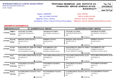 Το πρόγραμμα υπηρεσιών των φαρμακείων της πόλης της Κω, για τον Δεκέμβριο