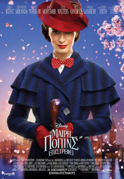 Υπόθεση: Στη νέα Mary Poppins της Disney, η Emily Blunt (The Girl on the Train, IntotheWoods) είναι η τέλεια νταντά με τις μοναδικές μαγικές ικανότητες, η οποία μπορεί να μεταμορφώσει μια βαρετή δουλειά σε μια αξέχαστη, φανταστική περιπέτεια. Σε αυτό το ολοκαίνουριο σίκουελ, γεμάτο φρεσκάδα αλλά και πιστό στο πνεύμα της πρώτης ταινίας, η Mary Poppins επιστρέφει για να βοηθήσει τη νέα γενιά της οικογένειας Banks να ξαναβρεί τη χαρά και την αδιαμφισβήτητη μαγεία της ζωής μετά από μια απώλεια. Η αινιγματική νταντά καταφτάνει παρέα με το φίλο της τον Jack (ο Lin-Manuel Miranda της Vaiana), έναν αισιόδοξο φανοκόρο που φέρνει φως -και ζωή- στους δρόμους του Λονδίνου.