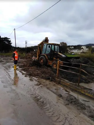 Συνεργεία του Δήμου προχώρησαν σε καθαρισμούς και αποκατάσταση του οδοστρώματος και σε απομάκρυνση όλων των φερτών υλικών.