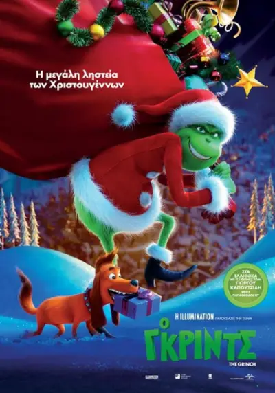 Υπόθεση: Η Illumination και η Universal, μετά τις παγκόσμιες επιτυχίες στο χώρο του animation με ταινίες όπως τα Minions και το ΕΓΩ, Ο Απαισιότατος, παρουσιάζουν φέτος τον Γκριντς. Πρόκειται για την 8η μεγάλου μήκους ταινία κινουμένων σχεδίων, η οποία βασίζεται στο κλασικό αγαπημένο βιβλίο του Dr. Seuss. Η ταινία Ο Γκριντς αφηγείται την ιστορία ενός κυνικού γκρινιάρη που θέλει να κλέψει τα Χριστούγεννα και να τα εξαφανίσει μια για πάντα. Όμως η καρδιά του θα γλυκάνει εξαιτίας του γενναιόδωρου πνεύματος ενός μικρού κοριτσιού. Αστεία, ενθουσιώδης και άκρως ψυχαγωγική, η ιστορία του Γκριντς μιλάει όπως καμία άλλη για την ουσία των Χριστουγέννων, για την αγάπη των γιορτινών ημερών και για τη δύναμη της αισιοδοξίας.