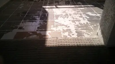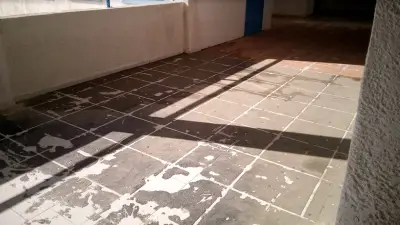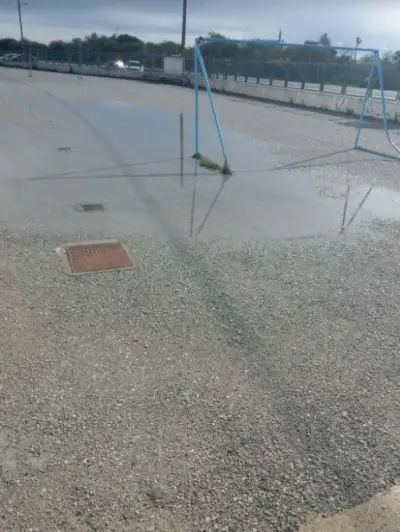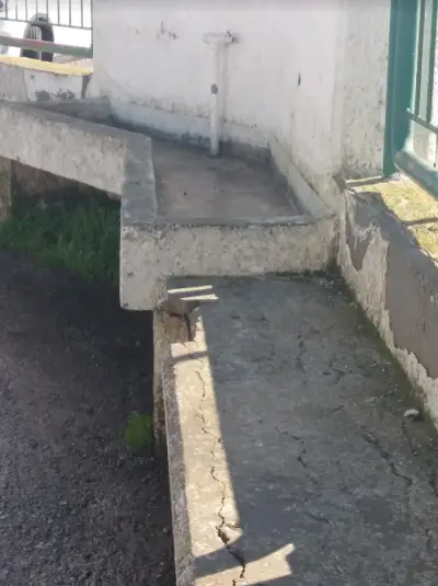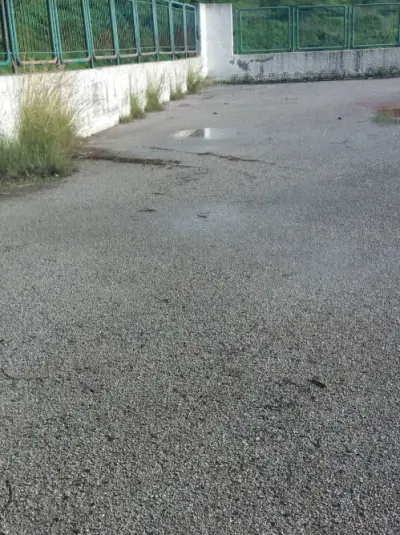 Αντικατέστησαν μερικώς τις πλάκες για να μην γλιστράνε οι μαθητές όταν βρέχει αλλά η κλίση των πλακών που τοποθετήθηκαν οδηγούν τα νερά προς το κτήριο το οποίο πάσχει από υγρασία τόσο στα γραφεία όσο και στις αίθουσες.