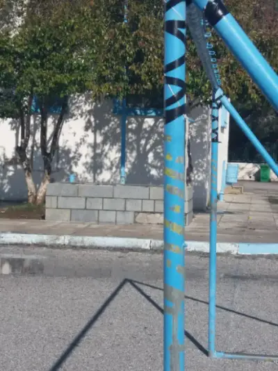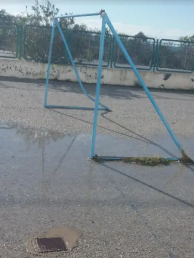 Το σκάμα χορταριασμένο... Το τέρμα στο «γήπεδο» επίσης δεμένο με σκοινιά ίσα που στέκεται...