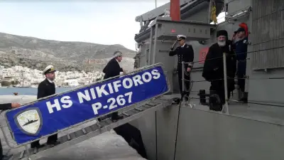 Μετά το πέρας της Τελετής οι αρχές του τόπου επισκέφθηκαν την Κανονιοφόρο στα πλαίσια εθιμοτυπικής επίσκεψης.