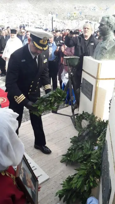 Το Πολεμικό Ναυτικό εκπροσωπήθηκε από τον Διοικητή του Ναυτικού Σταθμού Κω Πλωτάρχη Ιωάννη-Γεώργιο Καρδαρά ΠΝ, ο οποίος κατέθεσε στεφάνι ως εκπρόσωπος του Αρχηγού του Γενικού Επιτελείου Ναυτικού και από την Κανονιοφόρο Νικηφόρος που έφτασε στον Λιμένα της Καλύμνου από το πρωΐ της 3ης Ιανουαρίου.