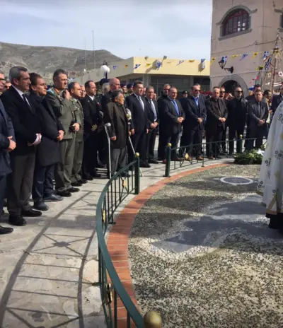 Η επιμνημόσυνη δέηση τελέστηκε στον Ιερό Ναό του Αγίου Νικολάου στις 11.15 και στη συνέχεια ακολούθησε κατάθεση στεφάνων στο μνημείο των Ιμίων!