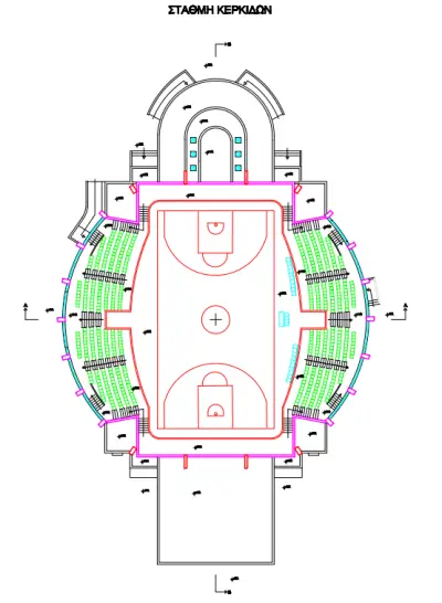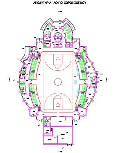 Πρόκειται για ένα κτίριο υψηλής αισθητικής, με επιφάνεια 1.060 τ.μ. για χώρους άθλησης και αποδυτηρίων, 550 τ.μ. για βοηθητικούς χώρους και χώρους διοίκησης, ενώ οι θέσεις των θεατών ανέρχονται σε 500.
