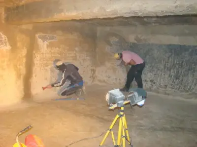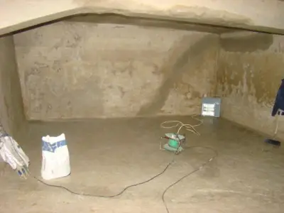 Μέχρι στιγμής έχει γίνει περιμετρική εκσκαφή της δεξαμενής, άδειασμα και αφαίρεση των παλαιών επιχρισμάτων εσωτερικά και αντικατάστασή τους από νέα τσιμεντοειδή υλικά υψηλής αντοχής, κατάλληλα για πόσιμο νερό.