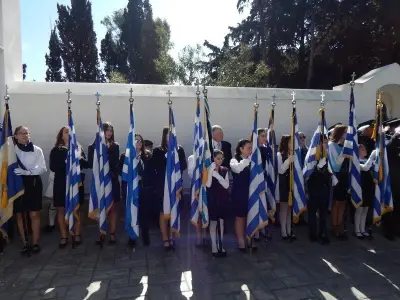 Τον πανηγυρικό της ημέρας εκφώνησε η κα Γαλανοπούλου Ξένια , ΠΕ02 Καθηγήτρια του 1ου Γυμνασίου Iπποκρατείου Κω, ενώ τιμές αποδόθηκαν με απόσπασμα από άνδρες της 80ΑΔΤΕ και της Φιλαρμονικής της.