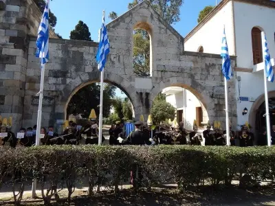 Τιμές κατά την κατάθεση στεφάνου, απέδωσε άγημα της 80 ΑΔΤΕ και η Φιλαρμονική του Δήμου Κω.