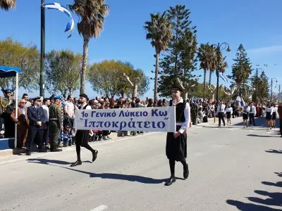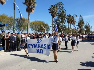 Δείτε φωτογραφίες από την παρέλαση στην Κω, για την Επέτειο της 7ης Μαρτίου, με επικεφαλής τη Φιλαρμονική του Δήμου Κω, των Εφεδροπολεμιστικών Οργανώσεων, του Ε.Ε.Σ. Περιφερειακό Τμήμα Κω, μαθητών της Δευτεροβάθμιας και Πρωτοβάθμιας Εκπαίδευσης πόλης και χωρίων, Προσκόπων, Οδηγών, του παραρτήματος του Λυκείου Ελληνίδων, λοιπών σωματείων, των μηχανοκίνητων τμημάτων του Λιμενικού Σώματος και της Πολιτικής Προστασίας του Δήμου Κω.