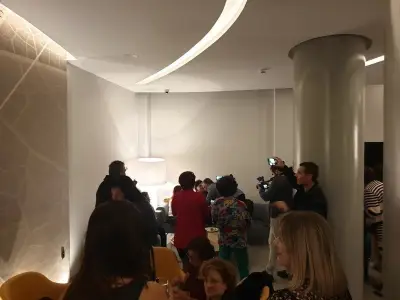 Στην είσοδο υπήρχαν στελέχη της παράταξης τα οποίαμοίραζαν body lotion από την τοπική επιχείρηση Pandrosia, ενώ πλούσιος μπουφές είχε στηθεί στο εσωτερικό της αίθουσας.