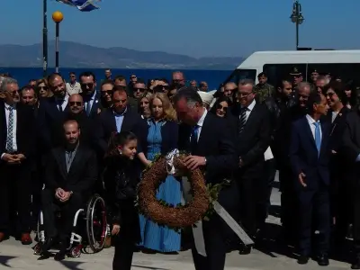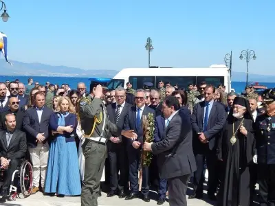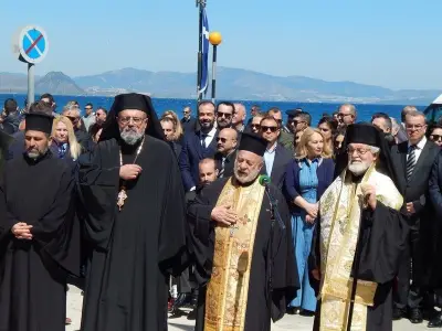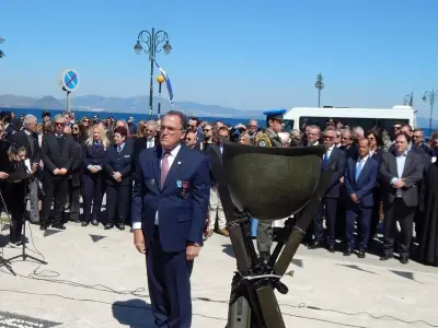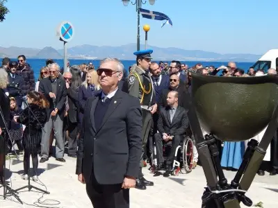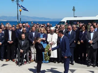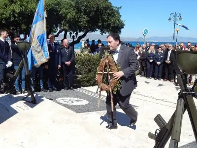 Στις 12:30 μετά το πέρας της δοξολογίας, πραγματοποιήθηκε η επιμνημόσυνη δέηση στο Βωμό της Πατρίδας από το Σεβασμιότατο Μητροπολίτη Άγκυρας κ.κ. Ιερεμία και η κατάθεση στεφάνων στο Ηρώο παρουσία των Αρχών και του Λαού, για τον εορτασμό της Εθνικής Επετείου της 25ης Μαρτίου 1821,στην Κω.