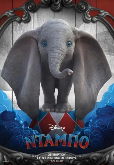 Υπόθεση: Από την Disney και τον οραματιστή σκηνοθέτη Tim Burton, η νέα, περιπετειώδης, live-action ταινία «Ντάμπο» («Dumbo»), προχωράει την πολυαγαπημένη κλασική ιστορία, στην οποία η διαφορετικότητα έχει την τιμητική της, η οικογένεια είναι ύψιστης σημασίας και τα όνειρα πετούν. Ο ιδιοκτήτης τσίρκου Max Medici (Danny De Vito) επιστρατεύει τον Holt Farrier (Colin Farrell), πρώην αστέρι του τσίρκου, και τα παιδιά του Milly (Nico Parker) και Joe (Finley Hobbins) για να φροντίσουν ένα νεογέννητο ελέφαντα με υπερμεγέθη αυτιά, τα οποία τον κάνουν περίγελο ενός τσίρκου που πνέει τα λοίσθια. Όταν ανακαλύπτουν όμως ότι ο Ντάμπο μπορεί να πετάξει, το τσίρκο ξαναζεί τις παλιές του δόξες, προσελκύοντας τον επιχειρηματία V.A. Vandever (Michael Keaton), που θέλει το ασυνήθιστο παχύδερμο για την Dreamland, το εντυπωσιακό του σόου. Ο Ντάμπο φτάνει σε νέα ύψη στο πλευρό της γοητευτικής και ταλαντούχας ακροβάτριας Colette Marchant (Eva Green), μέχρι που ο Holt ανακαλύπτει ότι, πίσω από την εκτυφλωτική γυαλάδα της Dreamland, κρύβονται σκοτεινά μυστικά.
