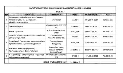 1ον) Στα 5 χρόνια της θητείας αυτής της δημοτικής αρχής υπήρξαν 92 αποφάσεις αναθέσεων με κόστος 577.297 ευρώ.