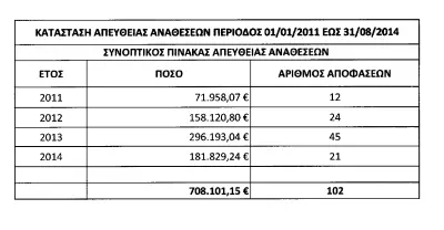 2ον) Στα 3,5 χρόνια της προηγούμενης δημοτικής αρχής υπήρξαν 102 αποφάσεις αναθέσεων με κόστος 708.101 ευρώ.