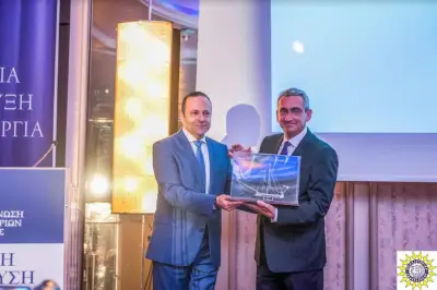 Με την ευκαιρία της λήξης των εργασιών της Γενικής Συνέλευσης της Κεντρικής Ένωσης Επιμελητηρίων και επ’ ευκαιρίας της συμπλήρωσης 70 χρόνων από την ίδρυση του Επιμελητηρίου Δωδεκανήσου, ο Πρόεδρος κος Γιάννης Πάππου και η διοίκηση του φορέα απένειμαν, στο πλαίσιο του εορταστικού δείπνου που παρατέθηκε το βράδυ του Σαββάτου, συμβολικό τιμητικό έμβλημα (τριήρης) στον Περιφερειάρχη Νοτίου Αιγαίου και τέως Πρόεδρο του Επιμελητηρίου κ. Γιώργο Χατζημάρκο για την μέχρι σήμερα αδιάληπτη προσφορά του στον επιμελητηριακό θεσμό.