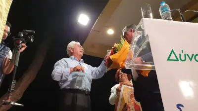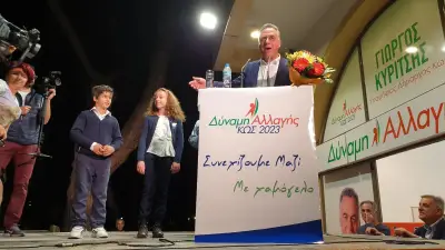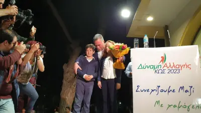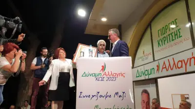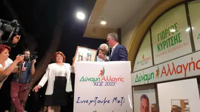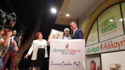 Δεν τελείωσαν όμως εκεί τα δώρα του κ. Κουτσουδάκη, αφού στη συνέχεια άνοιξε ένα μπουκάλι με κρητική ρακί και τσούγκρισε με το Δήμαρχο με την ευχή η εκλογική αναμέτρηση να τον βρει νικητή, ενώ στο τέλος ένα αγοράκι και ένα κοριτσάκι προσέφεραν στον. κ. Κυρίτση μια ανθοδέσμη.