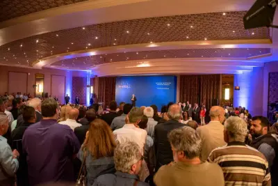 “Η παρουσία σας σήμερα εδώ, είναι η εγγύηση ότι η κατεύθυνση για το Νότιο Αιγαίο είναι μία και μόνο μπροστά!”. Με αυτά τα λόγια, ο Περιφερειάρχης Νοτίου Αιγαίου, Γιώργος Χατζημάρκος υποδέχθηκε τους εκατοντάδες των φίλων του που γέμισαν τη μεγάλη συνεδριακή αίθουσα «Δελφοί» του ξενοδοχείου “Ρόδος Παλάς” και τους χώρους έξω από αυτήν, για να παρακολουθήσουν την κεντρική πολιτική ομιλία του και την παρουσίαση των 30 υποψηφίων περιφερειακών συμβούλων της Περιφερειακής Ενότητας Ρόδου, που έγινε το βράδυ της Δευτέρας, μόλις 6 μέρες πριν από τις περιφερειακές εκλογές της 26ης Μαΐου.