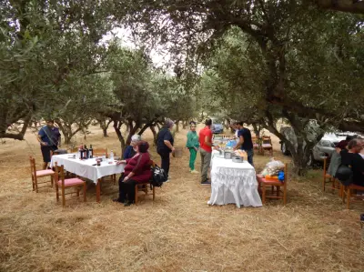 Χώρος της συνέντευξης επιλέχθηκε ο ελαιώνας «Πλατανάκι», αφού ως άνθρωπος του πρωτογενή τομέα η κ. Ρούφα ήθελε να κλείσει τις δημόσιες εμφανίσεις της δίπλα στη φύση.