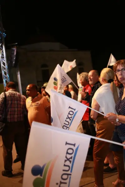 Η συγκέντρωση ξεκίνησε μετά μουσικής με τον υποψήφιο της παράταξης Νικολιό Χατζηνικολάου και άλλους μουσικούς να δίνουν το ρυθμό.