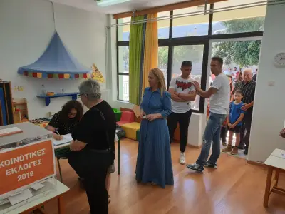 Στο 128ο τμήμα στο Πυλί, το οποίο στεγάζεται στο νηπιαγωγείο Πυλίου ψήφισε στις 11 το πρωί η επικεφαλής της παράταξης Όραμα + Δράση και υποψήφια Δήμαρχος Κω Ιωάννα Ρούφα - Έψιμου.