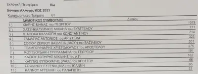 Δείτε παρακάτω τους πρώτους υποψήφιους Δημοτικούς Συμβούλους σε σταυρούς ανά δημοτική ενότητα για την παράταξη Δύναμη Αλλαγή - ΚΩΣ 2023.