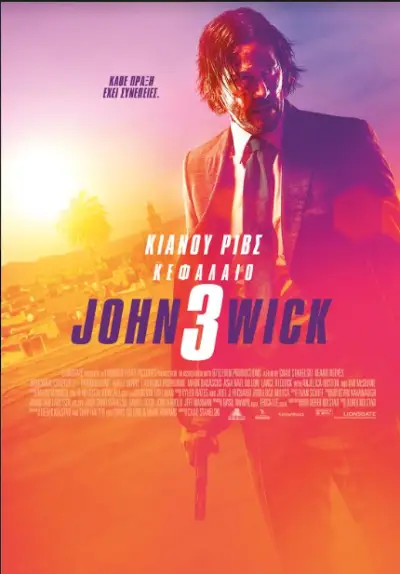 Υπόθεση: Ο ασταμάτητος JOHN WICK επιστρέφει στο τρίτο μέρος του πετυχημένου και γεμάτου αδρεναλίνη franchise, πιο εκδικητικός από ποτέ. Σκοτώνει ένα εξέχον μέλος μιας σκιώδους διεθνούς αδελφότητος και αυτόματα γίνεται στόχος για τους πιο αδίστακτους και σκληρούς εκτελεστές του κόσμου. Επικηρύσσεται για 14 εκατομμύρια δολάρια και πλέον σε κάθε του βήμα συναντά και έναν αποφασισμένο δολοφόνο.