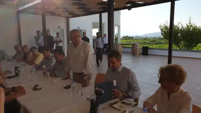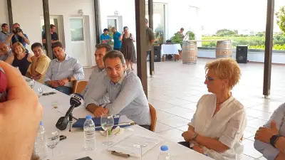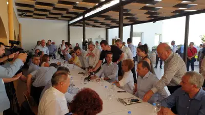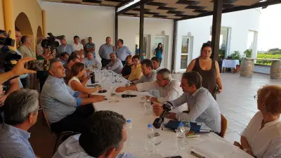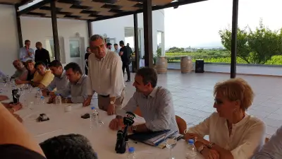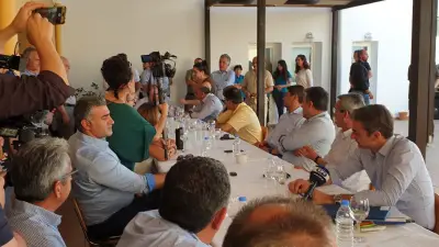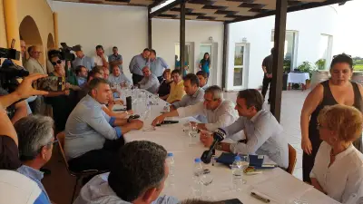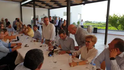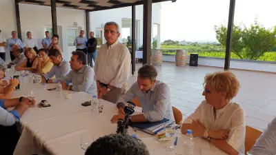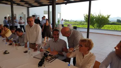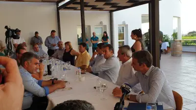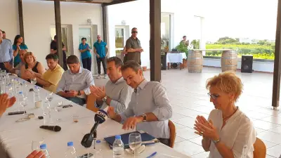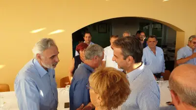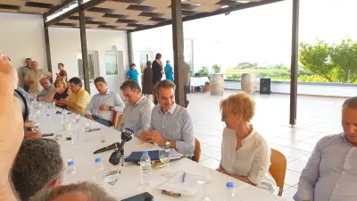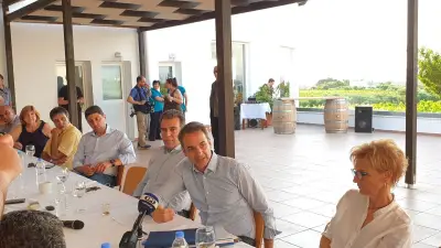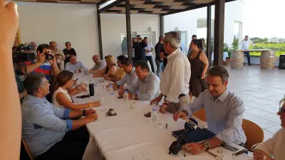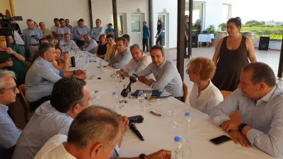 Ο πρόεδρος της ΝΔ έφτασε στην Κω γύρω στις 16.00, προερχόμενος από την Κάλυμνο. Στις 18:30 πραγματοποιήθηκε συνάντηση του κ. Μητσοτάκη με φορείς της Κω, στις εγκαταστάσεις του οινοποιείου Τριανταφυλλοπούλου.