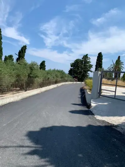 Την αποκατάσταση του κατεστραμμένου τοιχίου μήκους περίπου 30μ από οπλισμένο σκυρόδεμα, την αποξήλωση του κατεστραμμένου οδοστρώματος και την ανακατασκευή του με ασφαλτοσκυρόδεμα.
