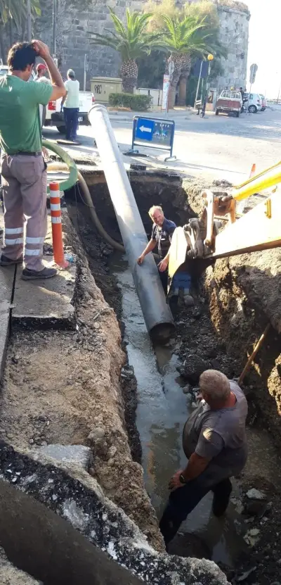 Από τις 6πμ την Κυριακή μέχρι αργά τα συνεργεία εργάστηκαν εντατικά προκειμένου να επισκευαστεί ο αγωγός, όπως και έγινε.