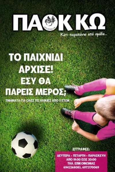 1.Η ακαδημία ποδοσφαίρου του ΠΑΟΚ ΚΩ ανακοινώνει την έναρξη των εγγραφών της Ακαδημίας για την σαιζόν 2019 -20 για όλα τα τμήματα (γεννηθέντες από 2005 - 2015) από την Δευτέρα 26 Αυγούστου και καθε απόγευμα Δευτέρες, Τετάρτες και Παρασκευές από τις 17:30 μεχρι τις 20:30 στα γραφεια μας στο Νέο Στάδιο Ανταγορας! Οι ώρες προπονήσεων της Ακαδημίας, θα ανακοινωθούν μετά την συγκρότηση των τμημάτων! Παράλληλα,