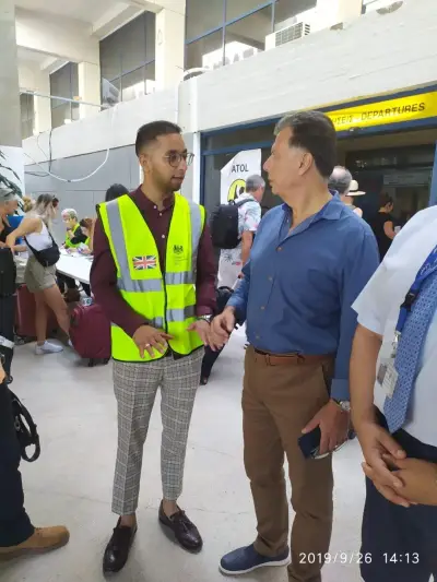 Στο αεροδρόμιο ο κ. Νικηταράς είχε συνεργασία με την Υποπρόξενο της Μεγάλης Βρετανίας στη Ρόδο Ράνια Κοσσιώρη, εκπρόσωπο του Υπουργείου Εξωτερικών της Μεγάλης Βρετανίας, τον υπεύθυνο για την αναχώρηση των Βρετανών τουριστών εκπρόσωπο της ATOL και τον Διευθυντή Αεροδρομίου κ. Μαστροδημητρίου Γεώργιο.