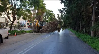 Εξαιτίας της βλάβης, όπως μπορείτε να δείτε και στις φωτογραφίες που δημοσιεύει το Kosnews24, ξεριζώθηκε φοίνικας ο οποίος βρισκόταν στην άκρη του δρόμου, χωρίς ευτυχώς να προξενηθεί κάποιο ατύχημα.