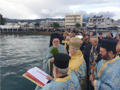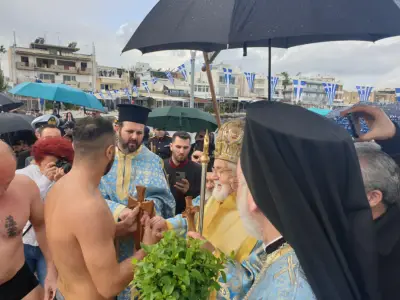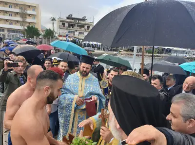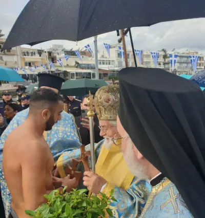 Παρά την κακοκαιρία, οι Αρχές του τόπου, εκπρόσωποι Φορέων αλλά και αρκετοί συμπολίτες μας, έδωσαν και φέτος το ''παρών'' στον Αγιασμό των Υδάτων και την κατάδυση του Τίμιου Σταυρού, στη θαλάσσια περιοχή μπροστά από την ξύλινη προβλήτα στη ΔΕΗ.