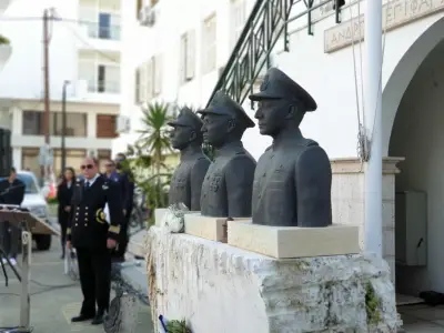...Τα νερά που κάποιοι θέλουν να γίνουν γκρίζα θα μείνουν για πάντα καταγάλανα. Όταν έπρεπε να φυσήξει ο αέρας για να υποσταλεί η ελληνική σημαία, ο Παναγιώτης Βλαχάκος, ο Χριστόδουλος Καραθανάσης και ο Έκτορας Γιαλοψός, έμειναν και έκαναν κοντάρι το κορμί τους για να την κρατήσουν ψηλά, δίνοντας το στίγμα της εθνικής μας συνείδησης...