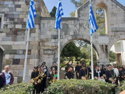 Τιμές κατά την κατάθεση στεφάνου, απέδωσε άγημα της 80 ΑΔΤΕ και η Φιλαρμονική του Δήμου Κω.