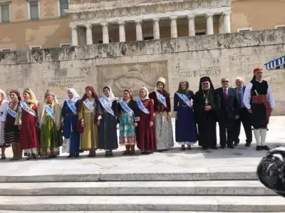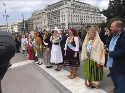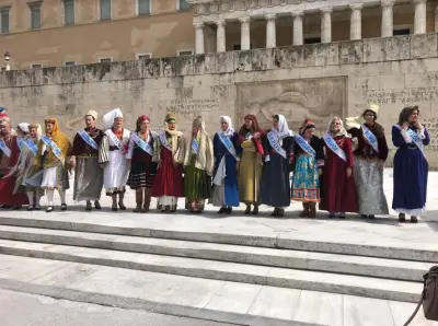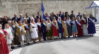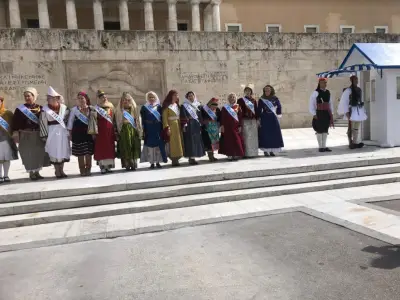 Στην παράταξη συμμετείχε ομάδα, νεανίδων και νέων με παραδοσιακές ενδυμασίες από την Ομοσπονδία Δωδεκανησιακών Σωματείων Αθηνών - Πειραιώς.