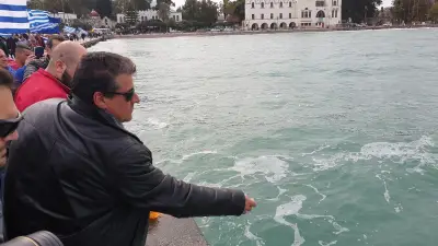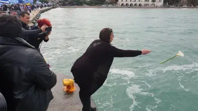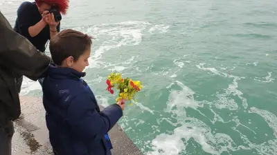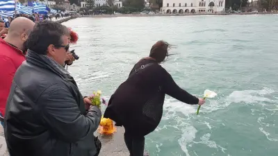 Λουλούδια στη θάλασσα άφησε αντιπροσωπεία πολιτών κατά τη διάρκεια της ειρηνικής πορείας για το μεταναστευτικό στην πόλη της Κω (πατήστε εδώ για το σχετικό δημοσίευμα)