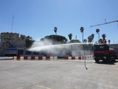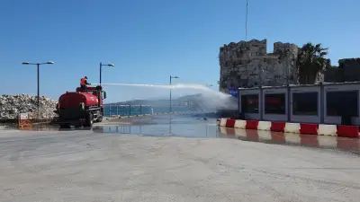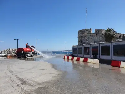 Μετά την μεταφορά των μεταναστών οι οποίοι κρατούνταν στον χώρο αναμονής στο λιμάνι της Κω, στις εγκαταστάσεις της πύλης Σένγκεν (πίσω από τη ΔΕΗ), το Λιμενικό Ταμείο Κω σε συνεργασία με ειδικό συνεργείο αλλά και την πολιτική Προστασία του Δήμου Κω προχώρησε στην απολύμανση του χώρου.