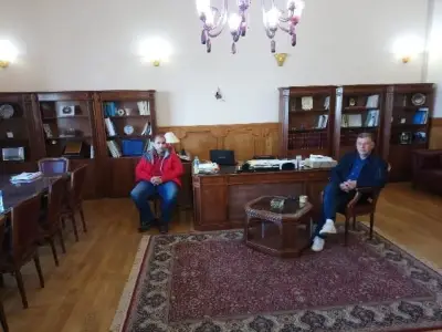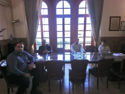 Στην συνάντηση παραβρέθηκαν επίσης ο Αντιδήμαρχος κ. Αβρίθης Παναγιώτης, ο Σύμβουλος Πρωτογενή Τομέα κ. Μονάχας Γεώργιος και ο υπεύθυνος του Δημοτικού Σφαγείου κ. Πατάκος Νικόλαος.
