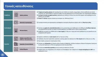 Η απόσταση μεταξύ των τραπεζιών θα είναι τουλάχιστον 2 μέτρα, θα επιτρέπεται ένας πελάτης ανά 3 τ.μ και ο μέγιστος αριθμός ατόμων ανά τραπέζι θα είναι τέσσερα άτομα.