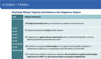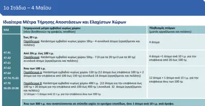 Το άνοιγμα της αγοράς θα γίνει σε επτά στάδια - Δείτε παρακάτω τους αναλυτικούς πίνακες με τα μέτρα τα οποία θα πρέπει να τηρούνται!