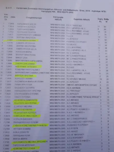 7η πανελλαδικά η Ζωή Δανάη Σιδέρη στις κούρσες , 2η στα ΜΤΒ στoυς συμμετέχοντες από Δωδεκάνησα και 1η από το νησί της Κω και στις 2 κατηγορίες βάσει βαθμολογιών της ΕΟΠ για το 2019