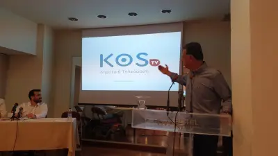 Ο Δήμαρχος Κω Θεοδόσης Νικηταράς και ο Πρόεδρος της επιχείρησης Παναγιώτης Χατζηχριστοφής, με την παρουσία του Διευθυντή του Σταθμού Χαράλαμπου Τσατσαρώνη και των εργαζομένων, παρουσίασαν το νέο σήμα του σταθμού, ο οποίος μετονομάζεται σε KOS TV.