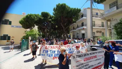 Συγκέντρωση έξω από το νοσοκομείο Κω και στη συνέχεια πορεία στο κέντρο της πόλης, πραγματοποίησε το πρωί της Τετάρτης 1 Ιουλίου ο Σύλλογος Εργαζομένων Κω με τη συμμετοχή σωματείων του νησιού αλλά και πολιτών, με αφορμή τις ελλείψεις σε γιατρούς, νοσηλευτές, προσωπικό καθαριότητας, διοικητικό και τεχνικό προσωπικό, διασώστες ασθενοφόρων αλλά και εξοπλισμό!