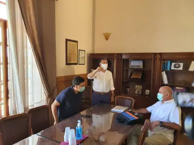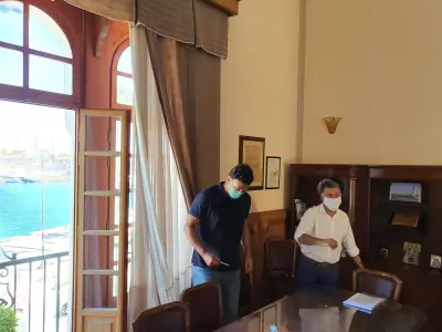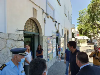 Ο Υπουργός μετά τις 10:30 έφτασε στο Δημαρχιακό Μέγαρο και αφού χαιρέτισε εργαζόμενους του Δήμου Κω, στη συνέχεια ανέβηκε στο γραφείο του Δημάρχου για να συναντηθεί με το Δήμαρχο Κω, τον Έπαρχο Κω, Βουλευτές αλλά και φορείς του νησιού.