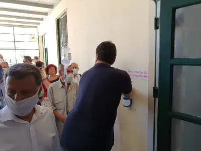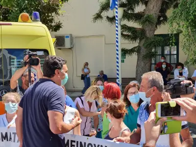 Ο Υπουργός έφτασε στο νοσοκομείο της Κω λίγο πριν τις 11:30. Μέλη του Εργατικού Κέντρου ΒΣΔ βρέθηκαν έξω από το νοσοκομείο για να διαμαρτυρηθούν για τα κενά στο νοσοκομείο, ενώ και εργαζόμενοι του νοσοκομείου σε πολιτισμένο κλίμα εξέφρασαν την αγωνία τους και τα παράπονά τους.
